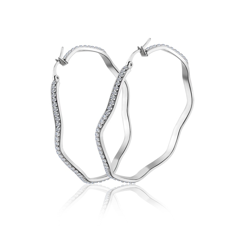 クロスボーダー熱売ステンレス誇張大イヤリングチタン鋼満ドリル耳輪幾何学波ステンレスイヤリング欧米