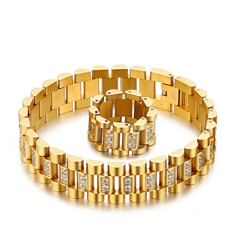 クロスボーダーの腕時計のチェーンのブレスレットはジルコンのチタンのアクセサリーの卸売りの24kの金の時計のバンドのステンレスのブレスレットの指輪を入れます。