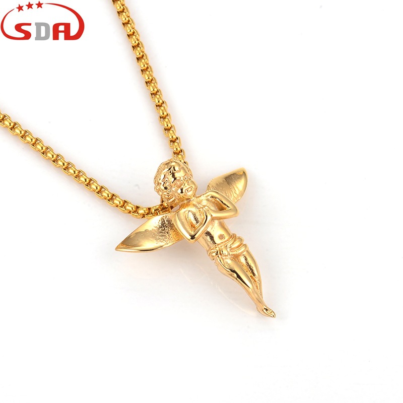 チタン鋼金メッキヒップホップ装飾中実天使ネックレスペンダントシリーズ個性ネックレス卸売り純鋼配鎖