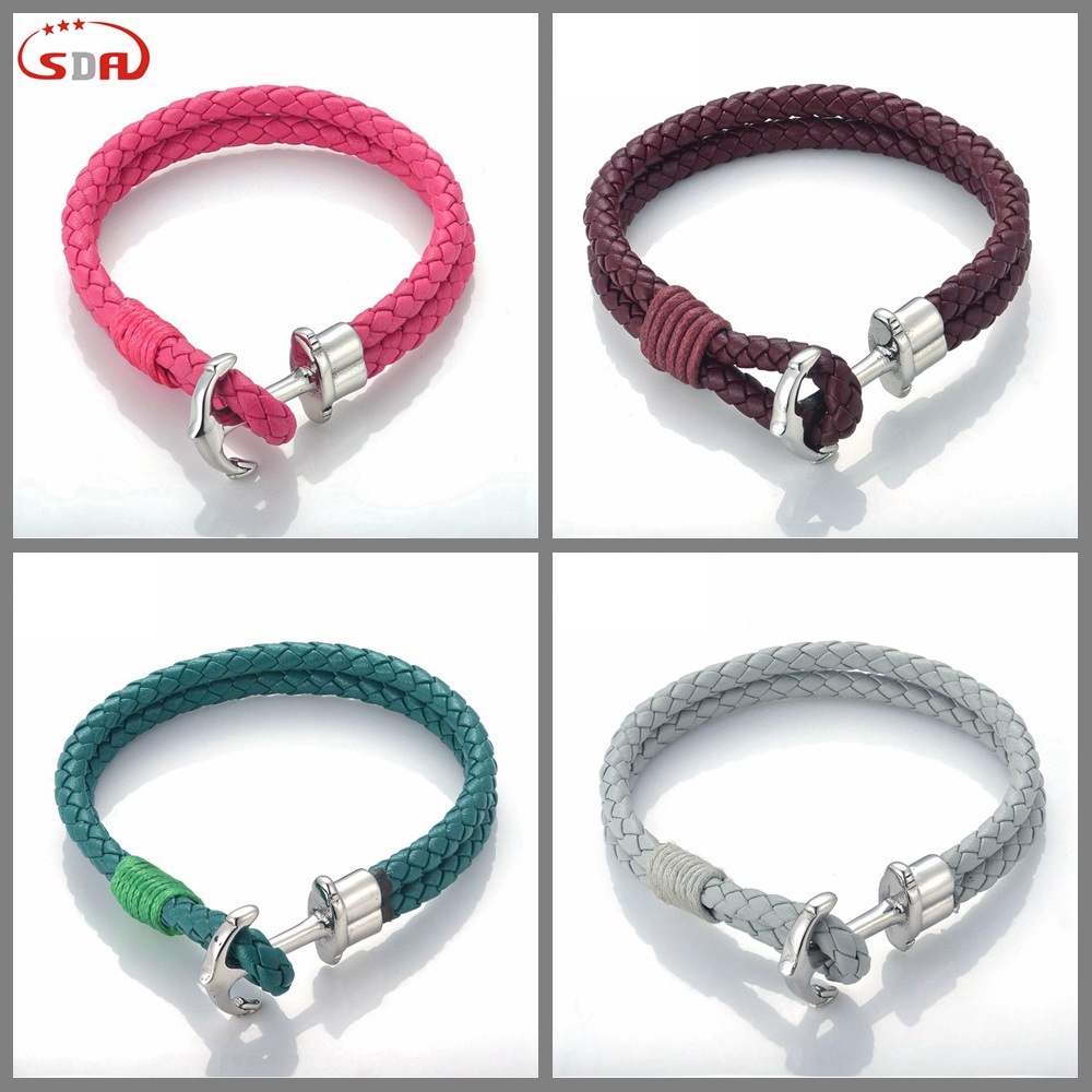 ステンレス製の船の錨は本物の牛革のブレスレットを掛けます。