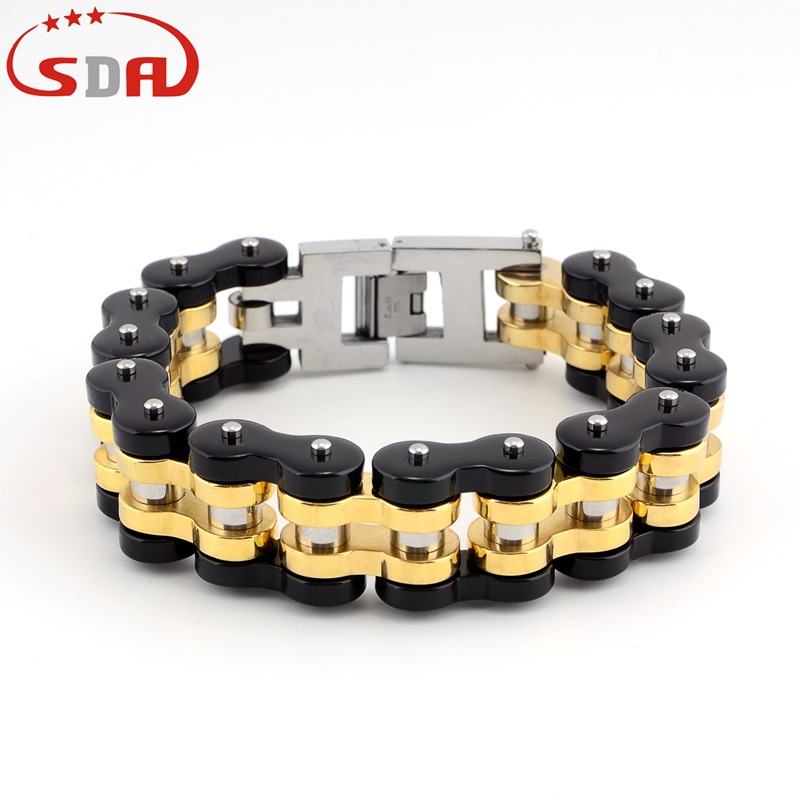 Wish人気sdaチタン鋼男性自転車チェーン欧米個性男性ブレスレットステンレス金メッキブレスレット