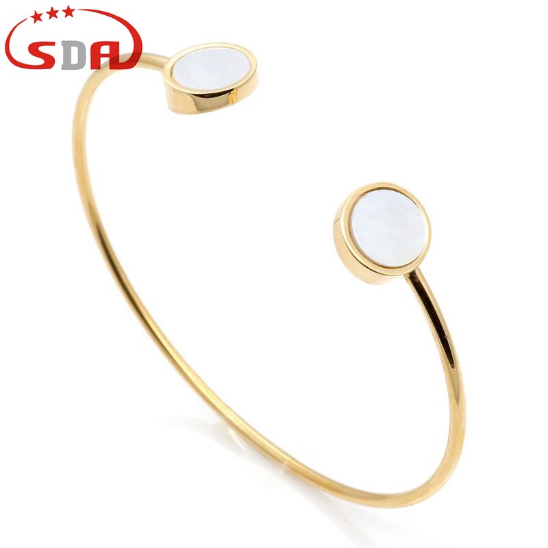 Sdaステンレスオープンブレスレット女性アクセサリー卸売りはサイズを調節して天然貝殻三色をはめ込むことができる