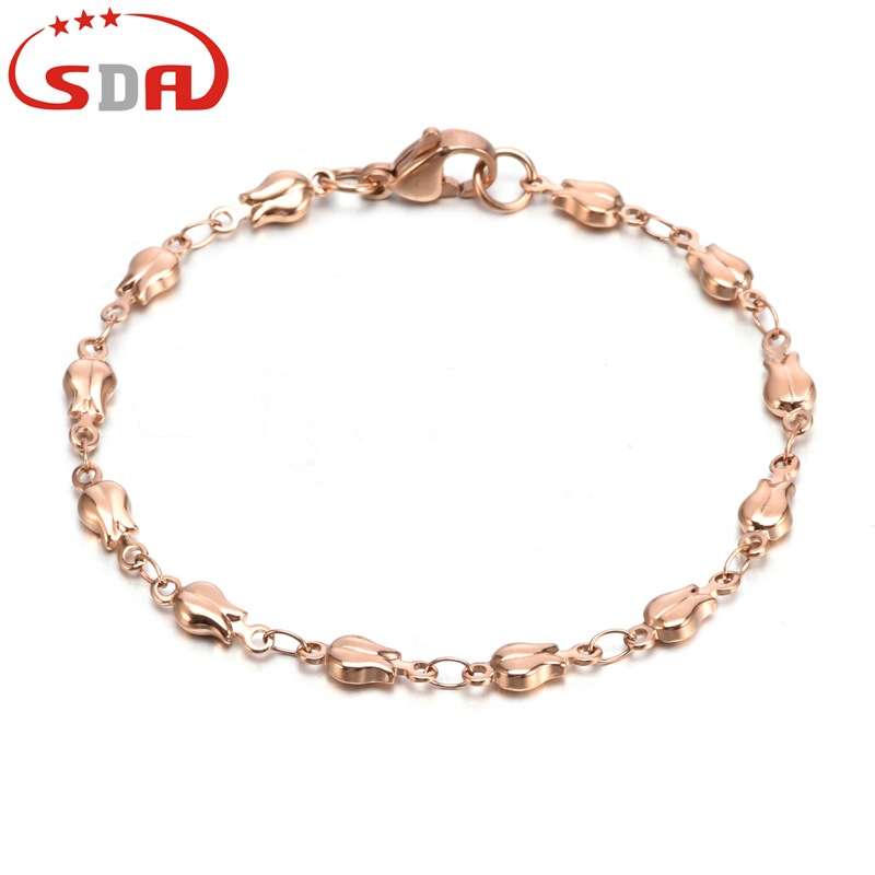 Sdaステンレスの花のブレスレットの女性の流行の個性の手首の装飾のバラの金の金色のチタンのブレスレット