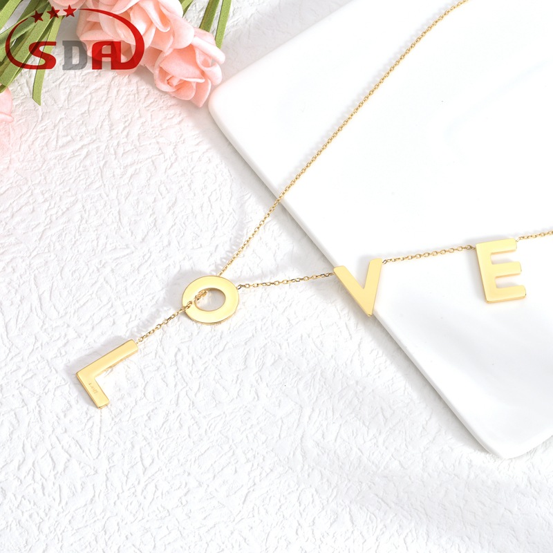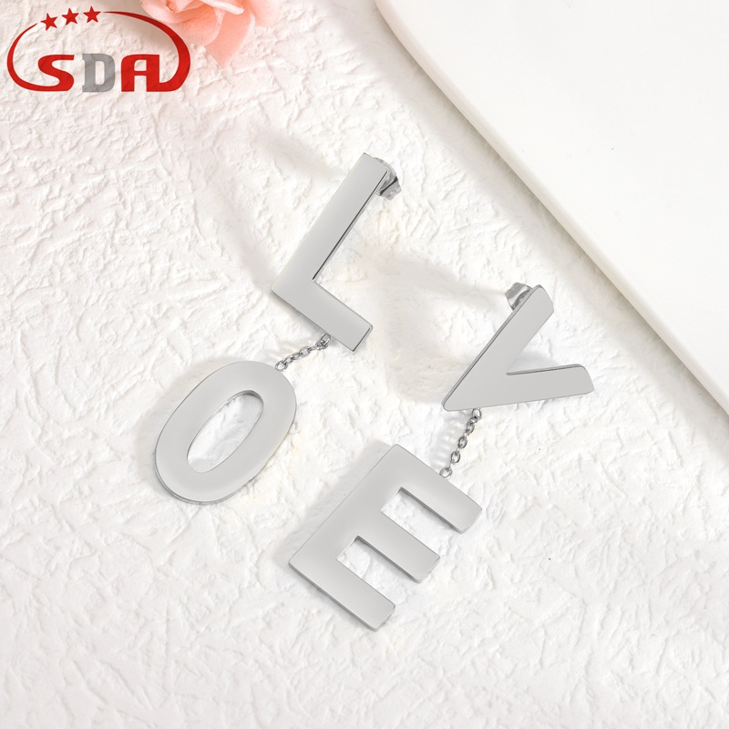 Sdaステンレスイヤリングネックレスセットloveアルファベットイヤリングタッセルネックレスレディースファッションチタン钢アクセサリー