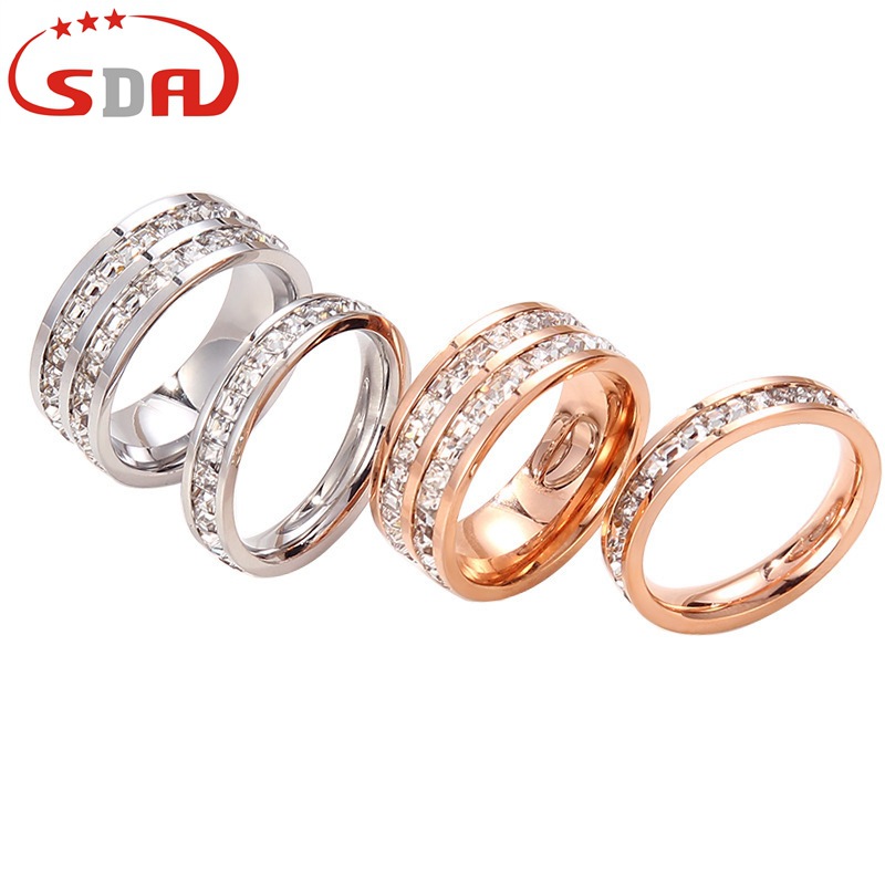 日韓気質ファッション単二列の石の指輪の女子学生のチタンの鋼は人差し指の小指の組み合わせの指輪を飾ります。