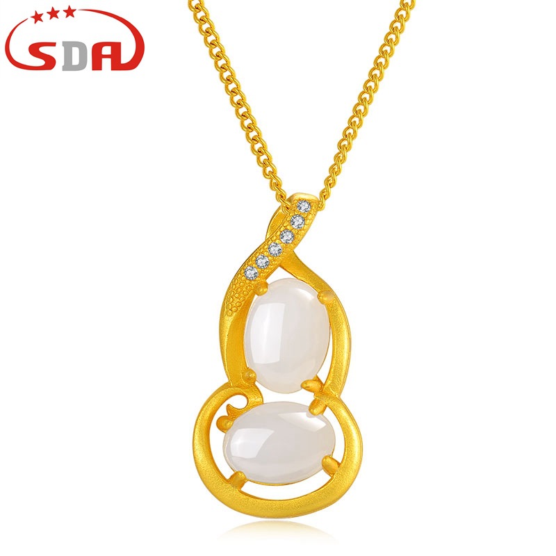 Sda本物s925純銀古法金入り和田玉ネックレスペンダントひょうたん天然玉男女ジュエリー