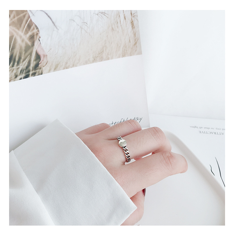 Sda ins個性冷淡風s925純銀指輪チェーン二重リング女性人差し指戒子アクセサリー