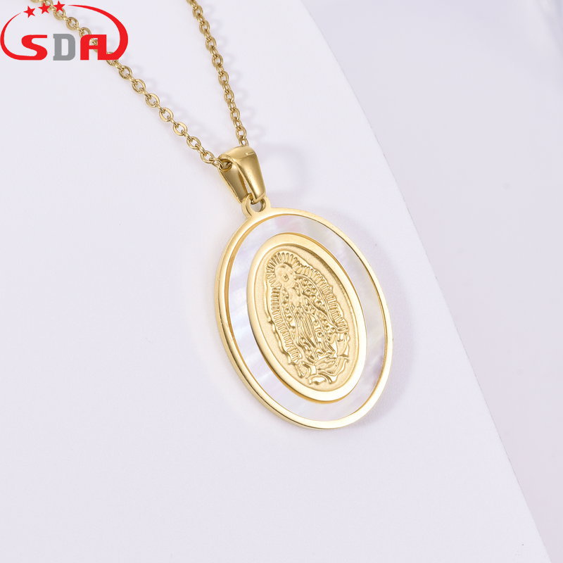 Sda街頭ヒップホップ潮牌金色メッキステンレスマリアモザイク貝殻ペンダント生中継ソース
