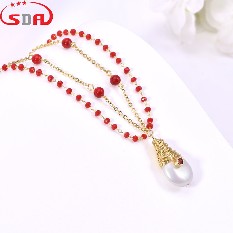 Sda対外貿易ネックレスメーカー卸売り欧米ステンレスチェーン赤模造水晶白貝ペンダント直播ソース