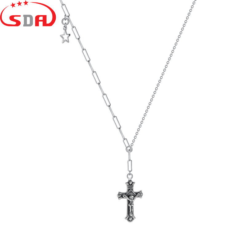 Sda欧米s925銀個性創意クロスペンダント男女ファッションネックレス十字剣形鎖骨鎖