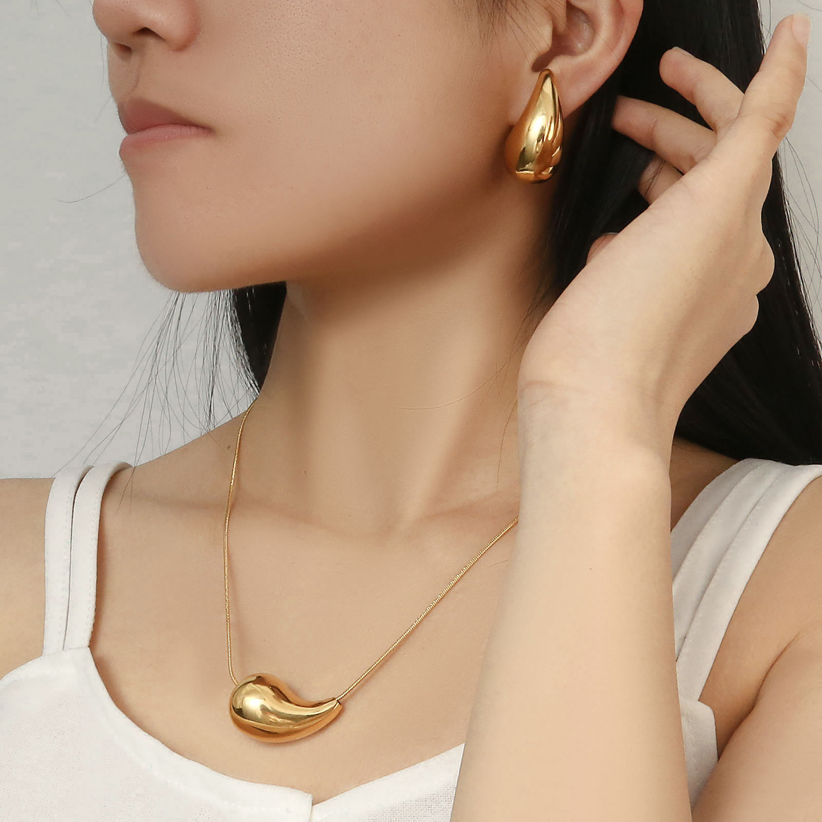 国境を越えた売れ筋ジュエリー、ウォータードロップ中空イヤリング、イヤリング、ネックレス、ペンダント、ステンレススチールメッキ18Kゴールド、高品質ジュエリー