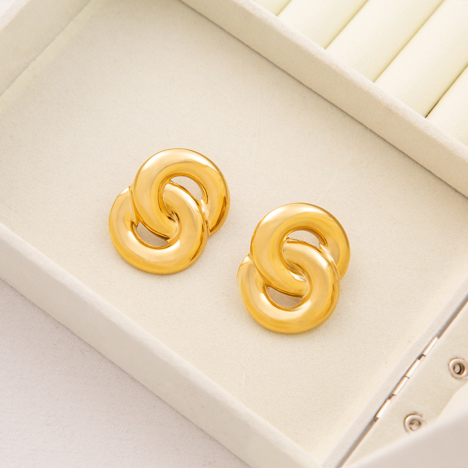 ヨーロッパとアメリカのパーソナライズされたファッション女性用8の字イヤリング、ユニークなデザインのイヤリング、炉内電気メッキ18Kゴールドステンレススチールイヤリング