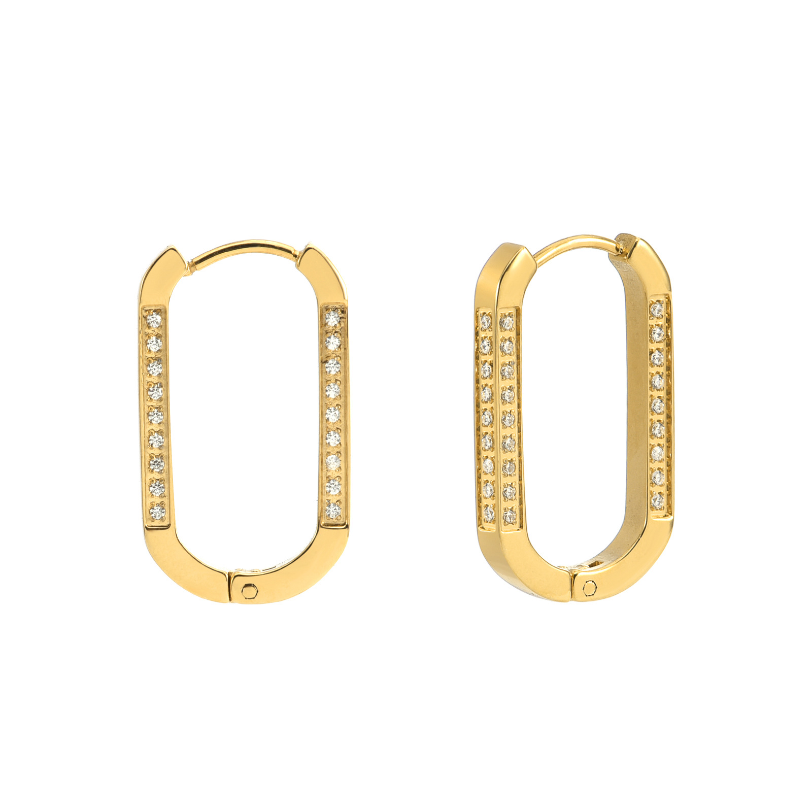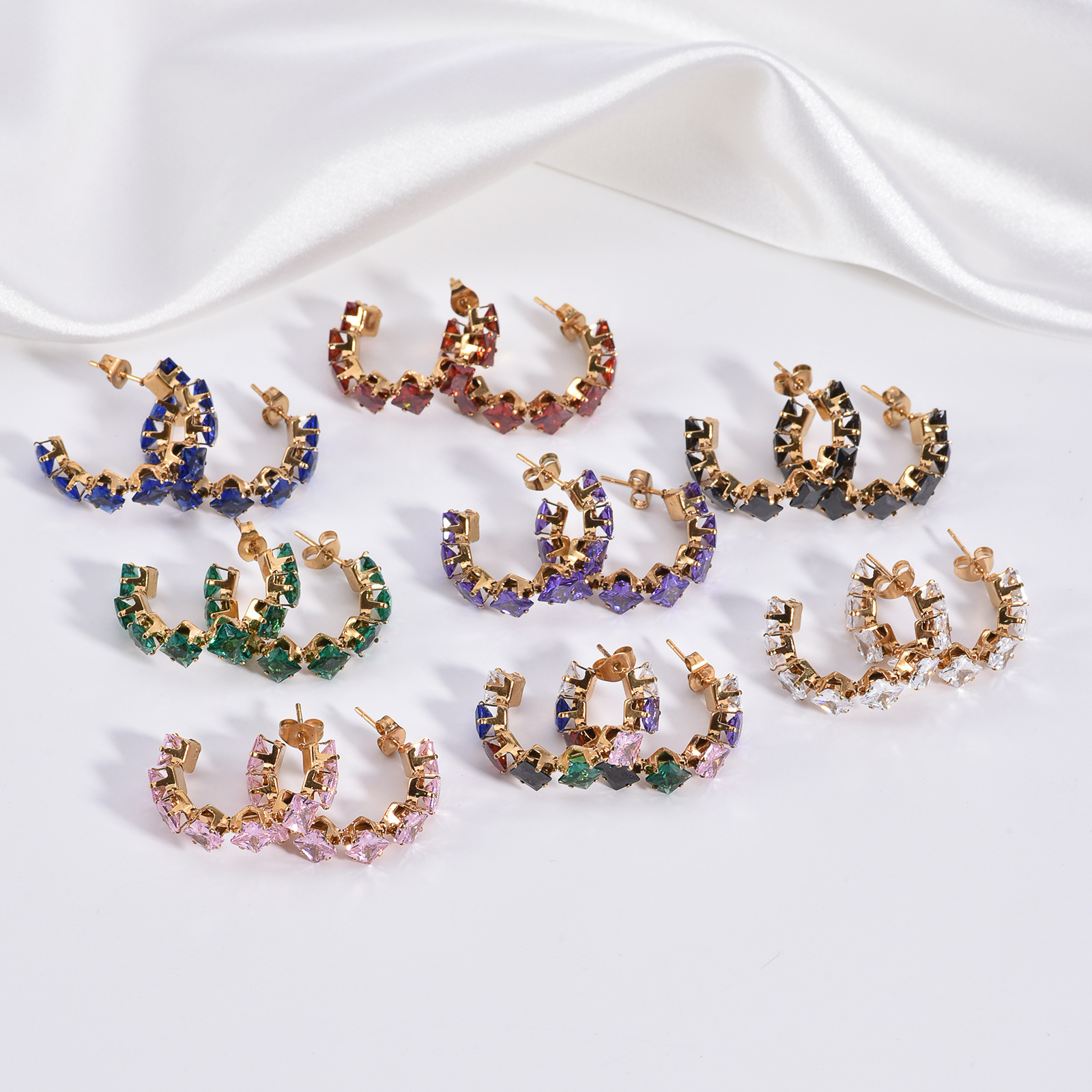 トレンドの個性的なチタン鋼の耳飾りの商品のソースは、多色の正方形のジルコンC形の耳のボタンの女性の誇張したデザインのイヤリングの女性です。
