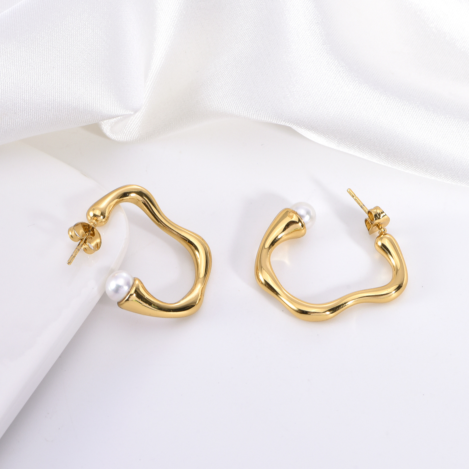 フランスレトロ宮廷気質高級感真珠イヤリング不規則幾何学設計ステンレス潮アクセサリー耳輪