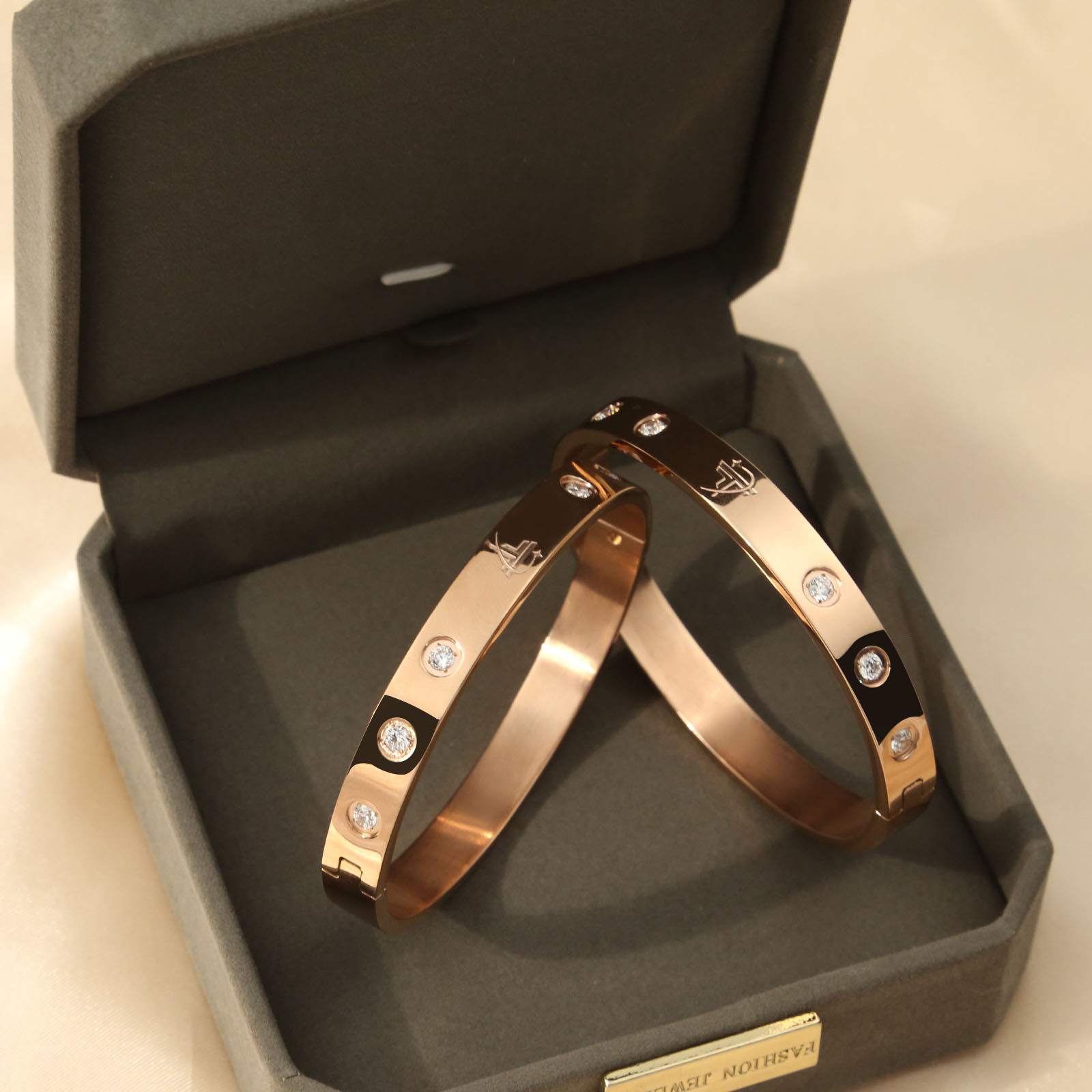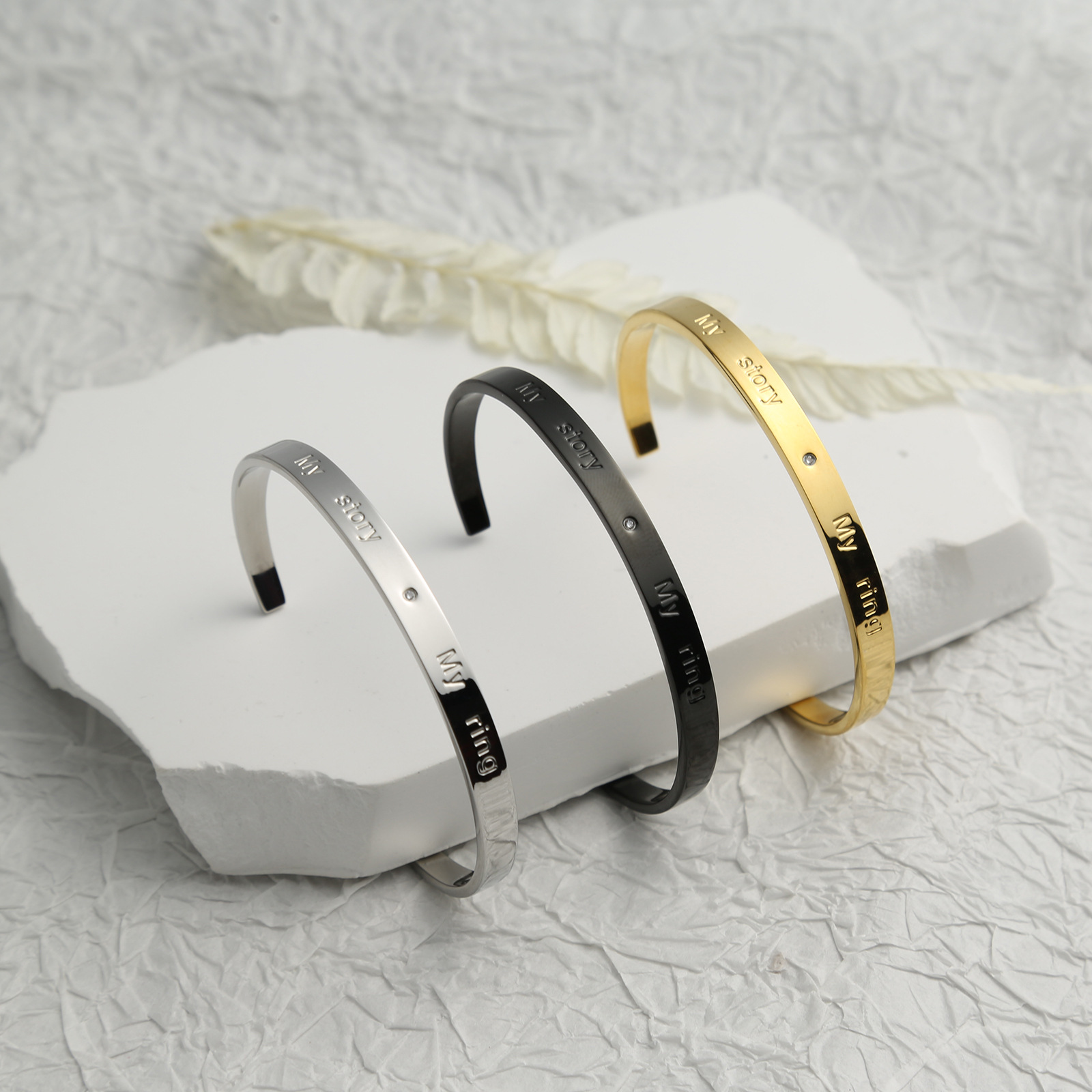 ファッション通勤チタン鋼のC字型の文字にダイヤモンドのブレスレットを入れて、カップルのプレゼントを彫って口を開けます。