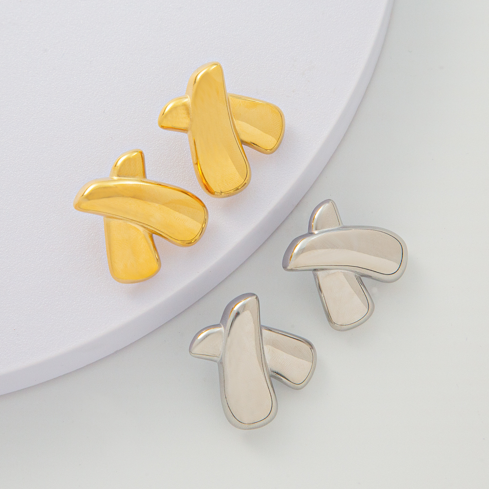 欧米のクロスボーダー熱売Xアルファベットピアスステンレスメッキ18k金ファッション大気デザイン感百合耳飾り女