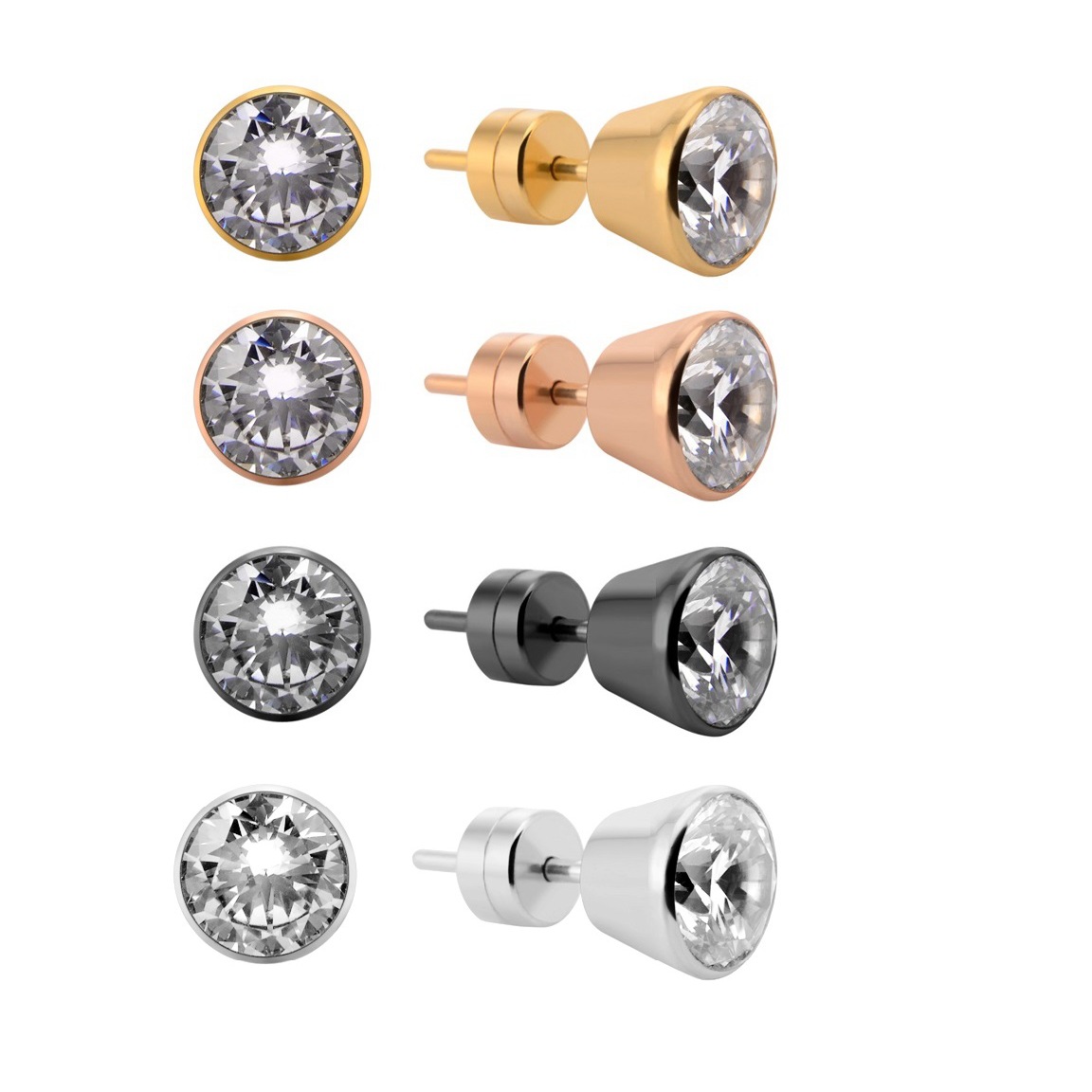 百合ファッションイヤリング男女通用ジルコンピアスステンレス入れドリルカップルイヤリングアクセサリー黒色金色など