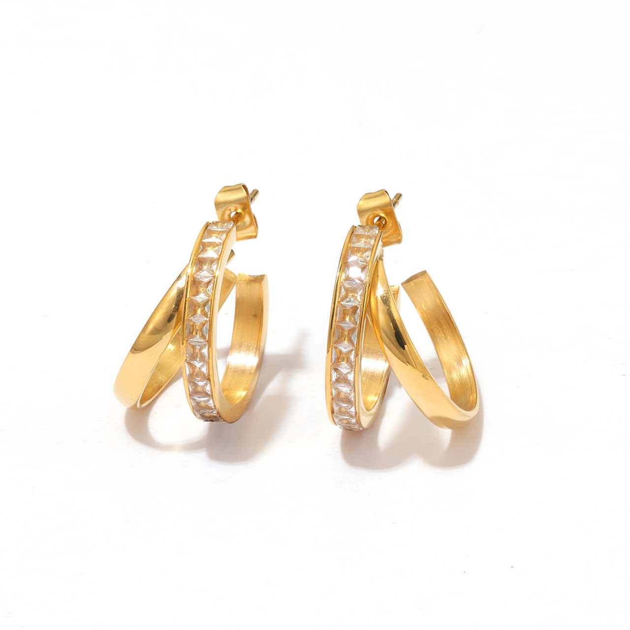 欧米のクロスボーダー18k金銀2色ジルコンイヤリング立体双環C形巻きイヤリングアマゾン耳飾り