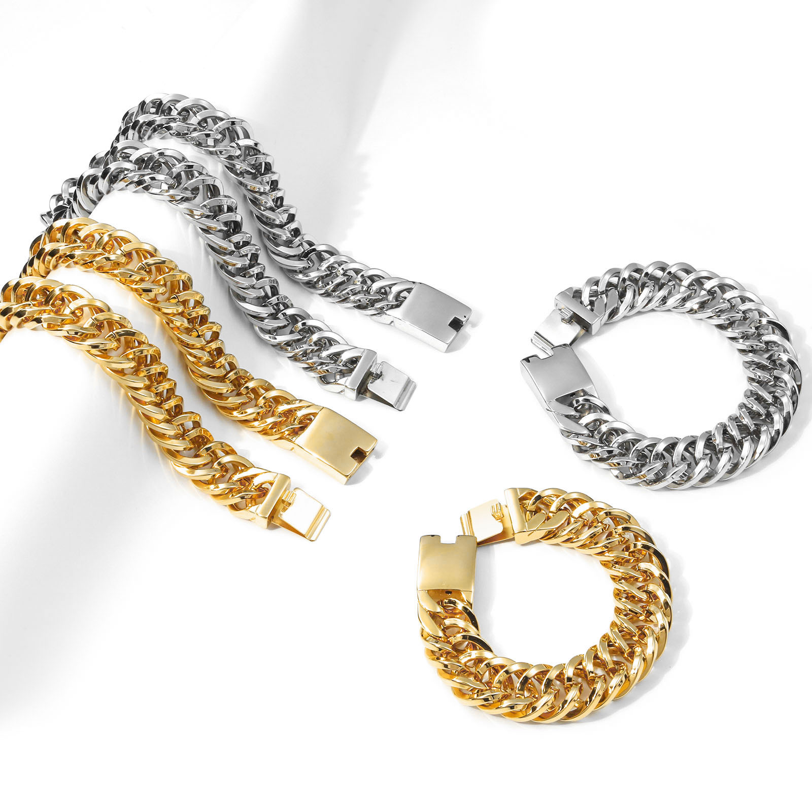 14mm幅のチタン鋼のスキューバチェーン欧米のアクセサリーの卸売りの個性的な幾何学の男性のステンレスのブレスレットの工場は卸売りします。