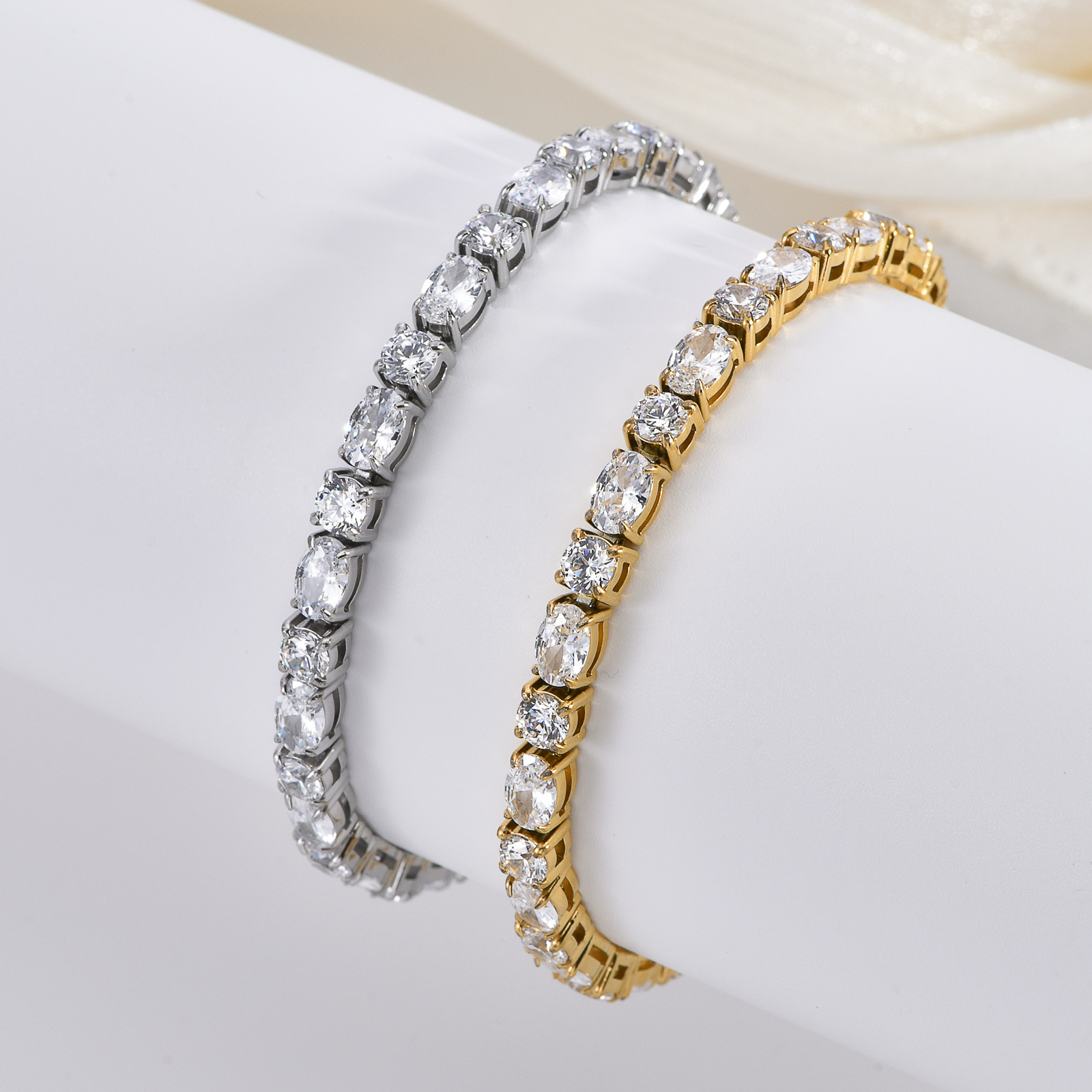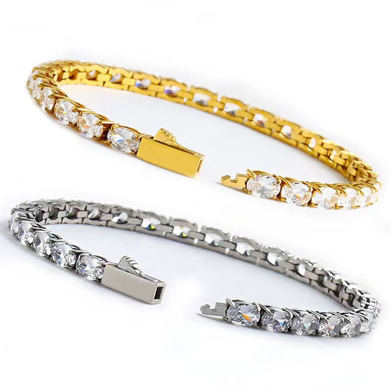 源メーカーテニスチェーンブレスレット楕円5AジルコンTennisチェーンチタン鋼鋳造反転しないネックレス