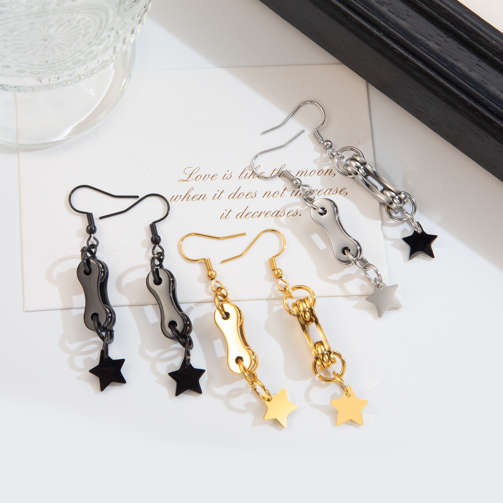 メーカー直販ステンレス自転車チェーンイヤリング男女ファッション個性小衆五角星イヤリングアクセサリー卸売り