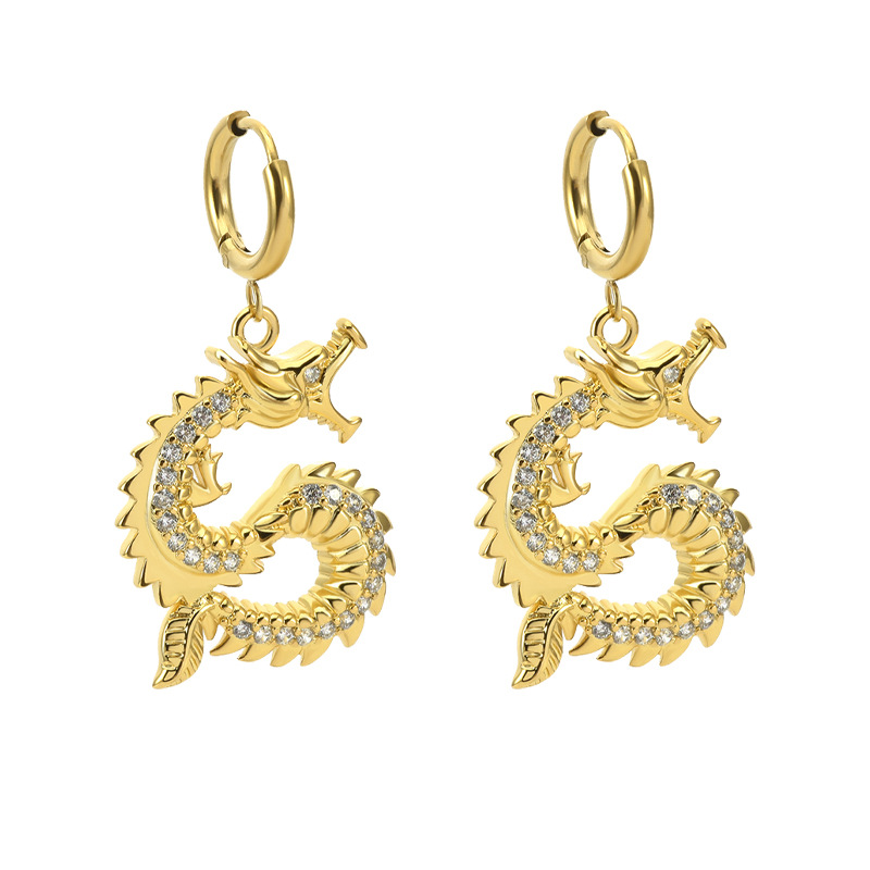 中国風ステンレス龍イヤリングネックレスセット高級感があります。