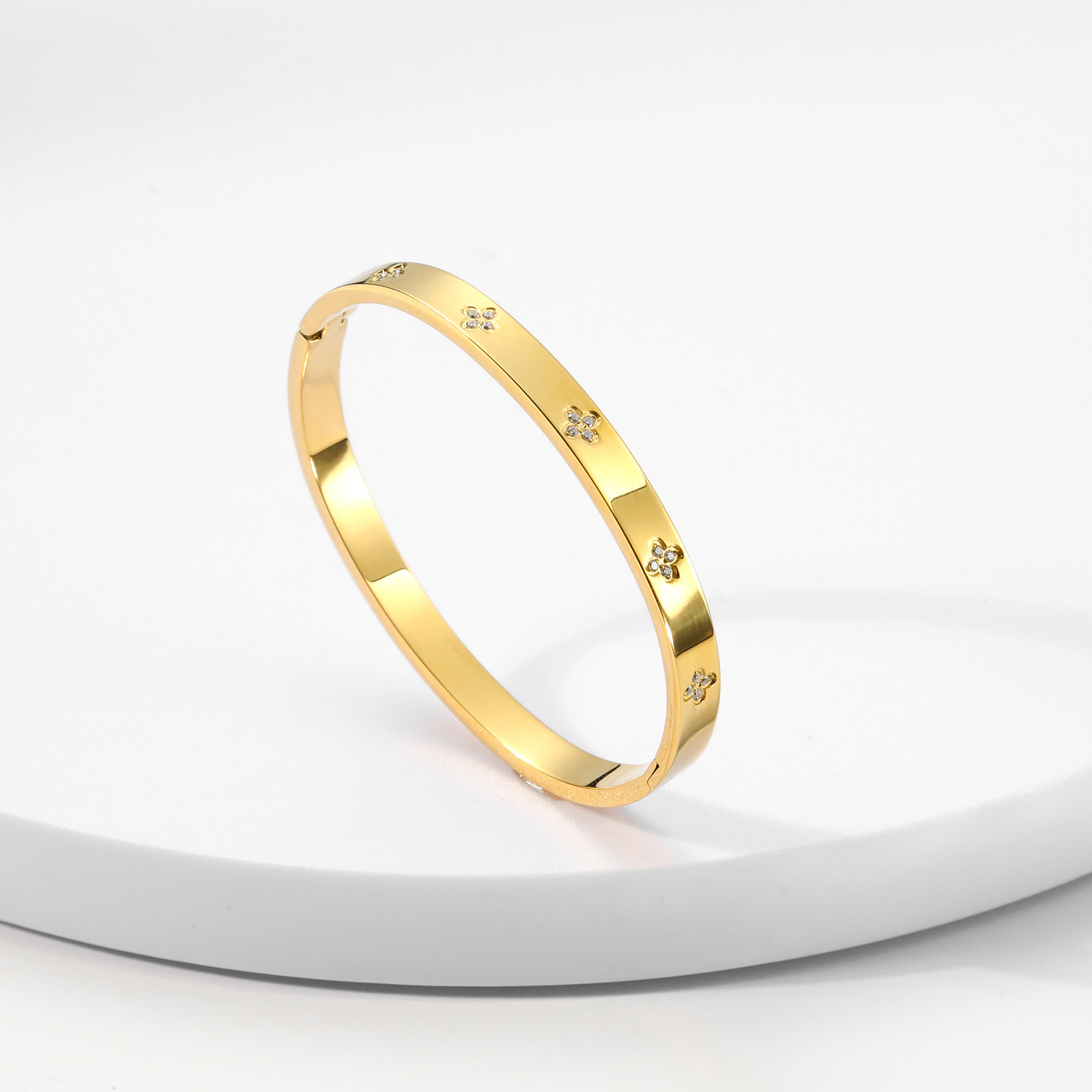 韓範精致優雅ステンレス百合通勤ブレスレット真空メッキ18k金シンプル素リングブレスレット
