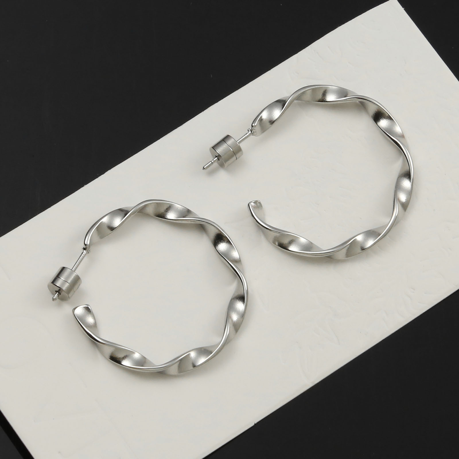 高品質の欧米の経典の色あせたチタン鋼のねじり線のイヤリングの不規則な弧面の運動風の女性の耳の輪
