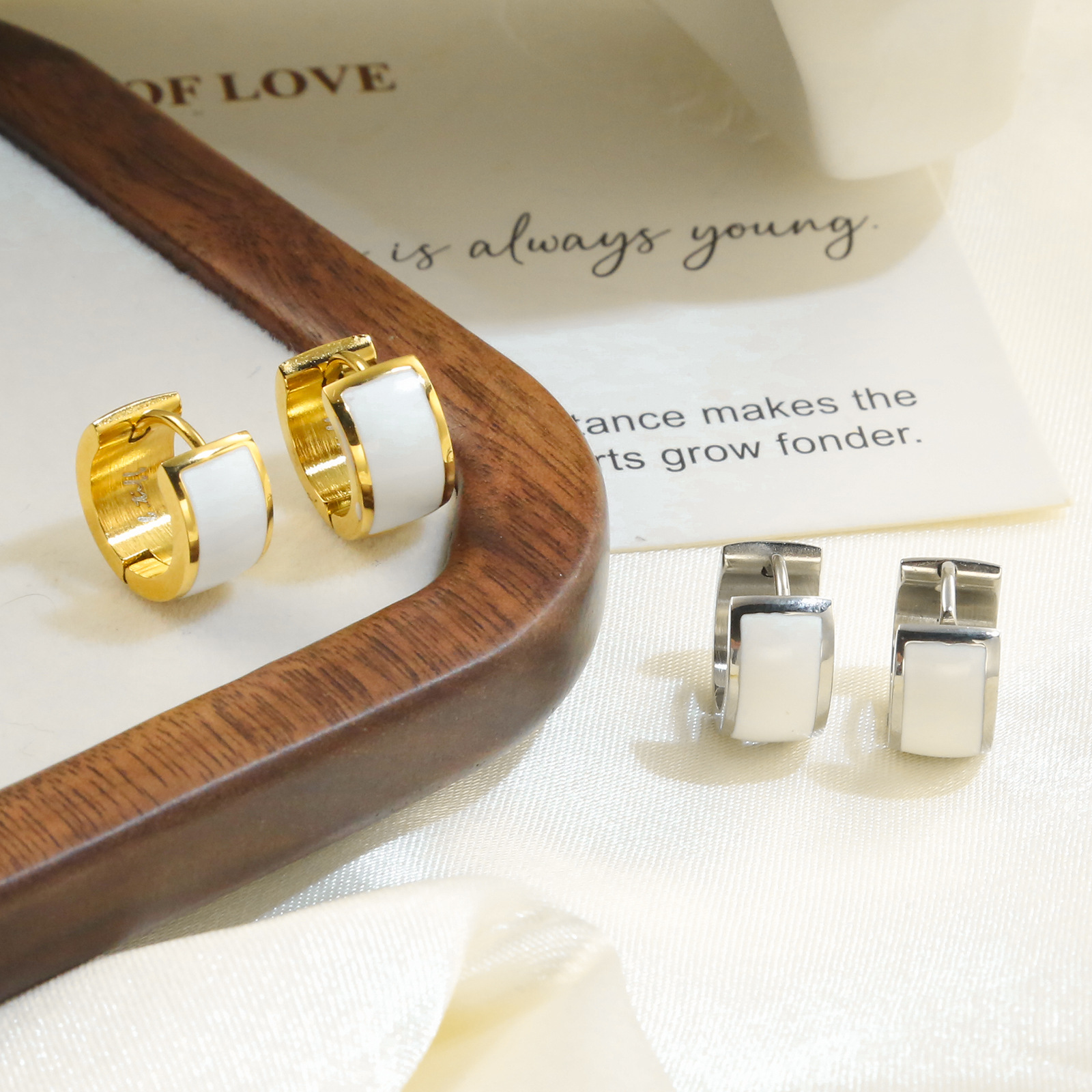 軽くて豪華なCNCファッションは石の円のイヤリングのステンレスの光沢のカップルの幾何学の耳をはめます。