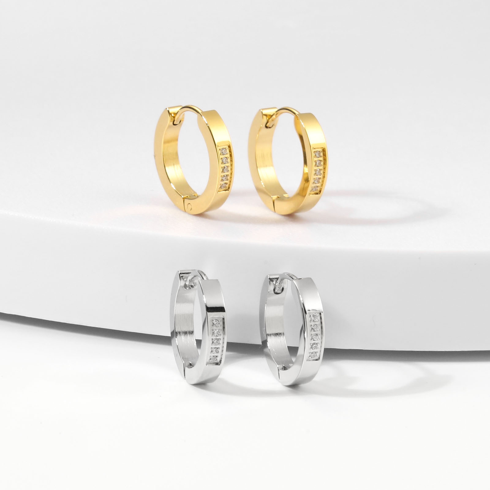 国境を越えた欧米の高級感のある円のイヤリングチタン鋼の光沢のある面には、ドリルの耳の輪がついています。