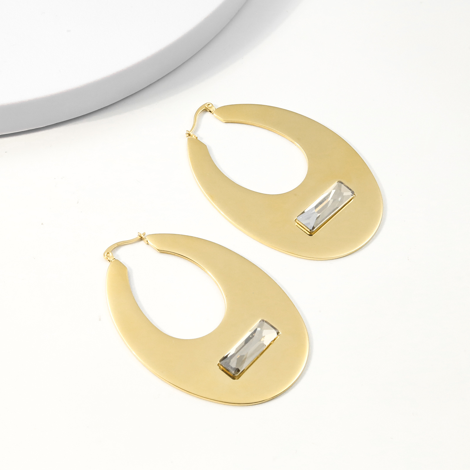 SDAステンレス真空メッキ18k金ファッション個性大楕円イヤリング大気誇張女性イヤリング