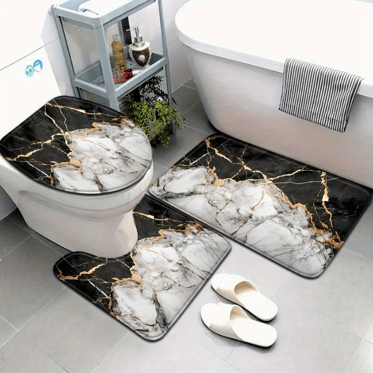 Amazon フランネルトイレ 3 点セット浴室フロアマット家庭用 U 字型フロアマット便座マットラベル付きドロップシッピング
