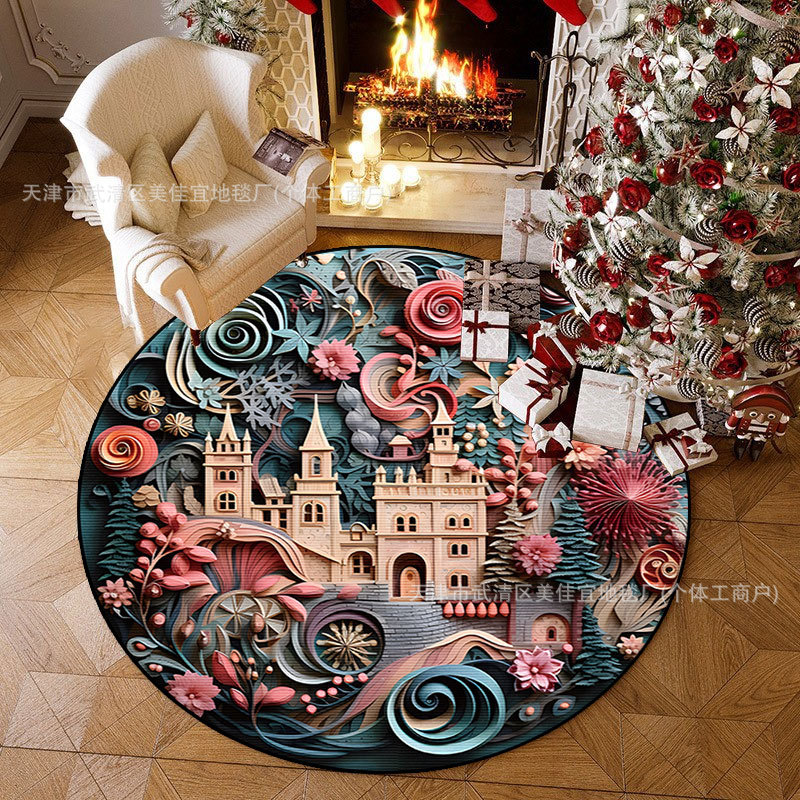クロスボーダークリスマスカーペット寝室ベッドサイド円形椅子床マットリビングソファティー吸水カーペット装飾カーペット