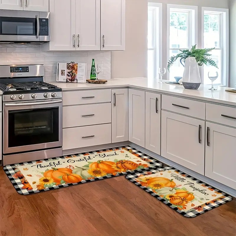 国境を越えた秋のカボチャの床マットキッチンの2つのセットの床マットは汚れに強く、足マットの玄関を管理しやすい
