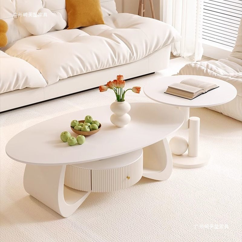 クリームスタイルミニマリストスレートコーヒーテーブルリビングルームホームコーヒーテーブルインターネットセレブホットモデル2024新しいライト高級ティーテーブル小さなアパート