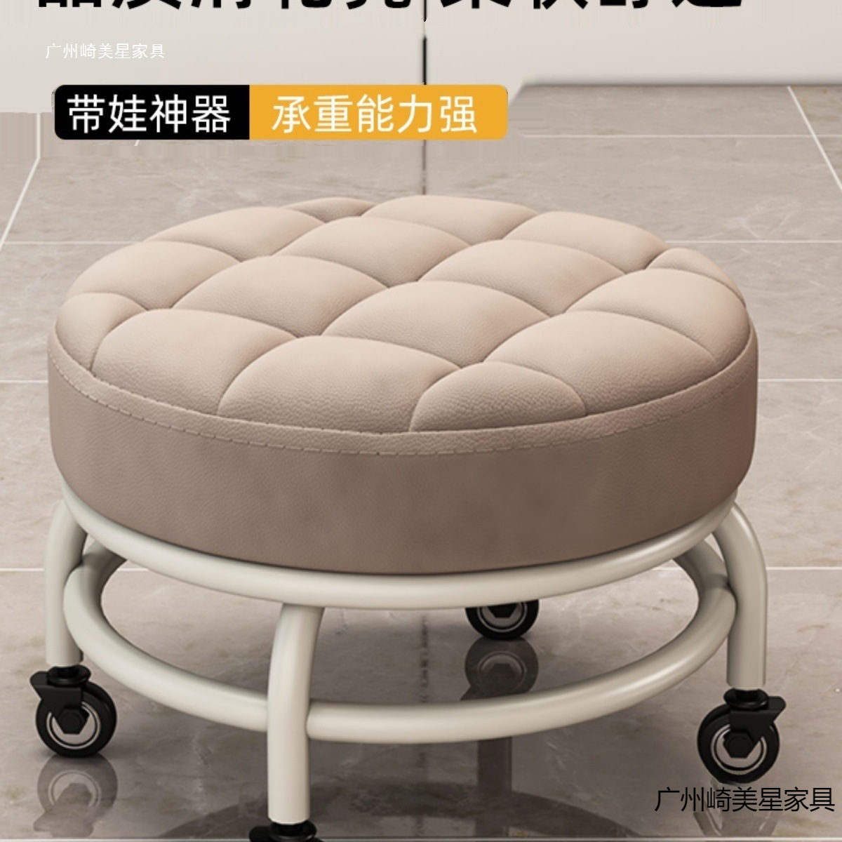 プーリー付きロースツール、サイレントユニバーサルホイール、小型スツール、金属製家庭用大人用可動靴交換ベンチ、車輪付き