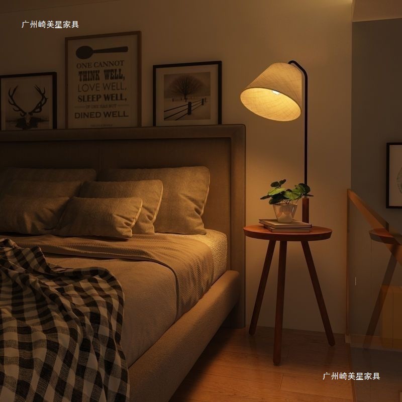 実木床灯客間ソファーの隣のお茶のシンプルな寝室のベッドの頭の棚の置物の一体のネットの赤い縦型の電気スタンド