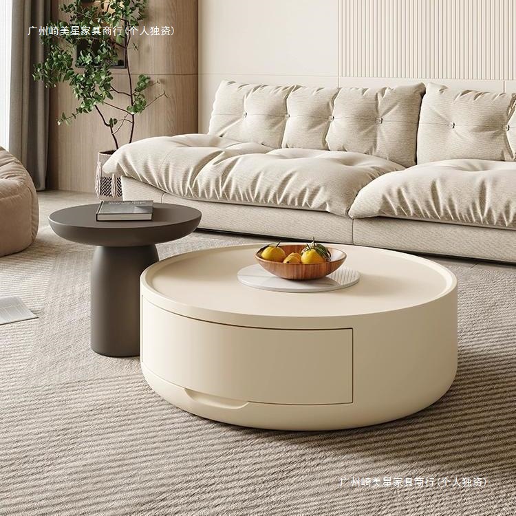 小さなアパート用のクリームスタイルのコーヒーテーブル、シンプルでモダンな丸い無垢材の組み合わせサイドテーブル、可動式の軽くて豪華な家庭用コーヒーテーブル
