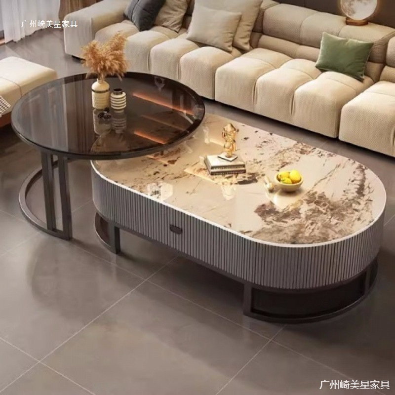 Tal ロックボードコーヒーテーブルリビングルームホームライト高級モダン 2024 新しいシンプルな小さなアパートティーテーブルオーバルコーヒーテーブルセット