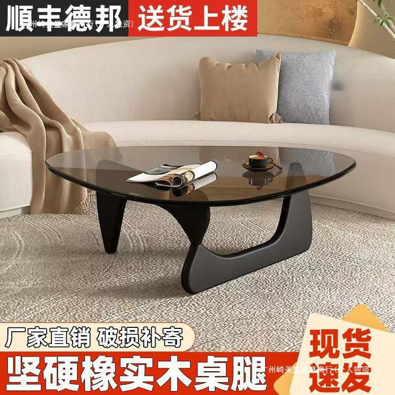 強化ガラスコーヒーテーブル小さなリビングルームホーム無垢材ミニマリストモダンシンプル野口勇クリエイティブラウンドティーテーブル