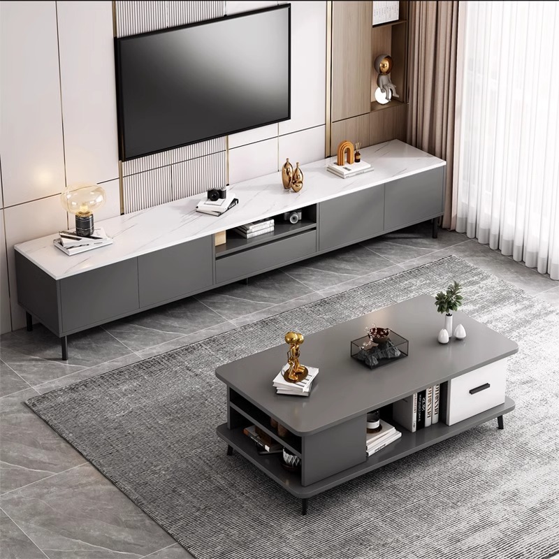 テレビの棚は現代的でシンプルな小型タイプのリビングルームです。