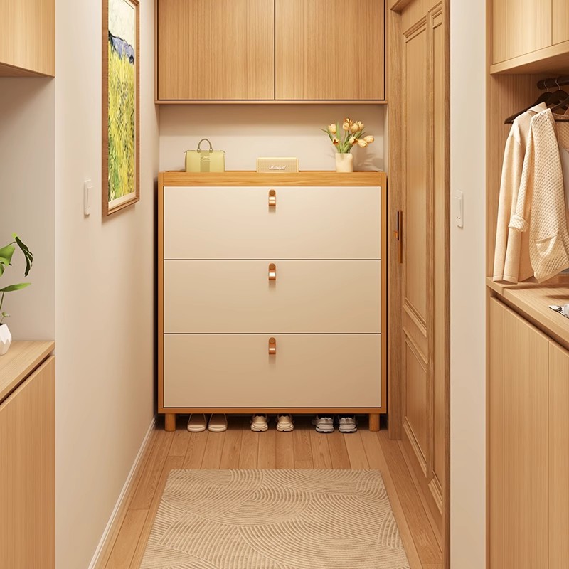 小型狭い玄関収納キャビネット、超薄型無垢材玄関キャビネット、家庭用多層収納防塵靴ラック