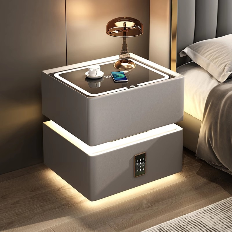 ベッドの頭の戸棚の2024の新型の知能の家庭の寝室の軽くて豪華な高級感の実木のベッドのサイドの戸棚のロッカーの金庫