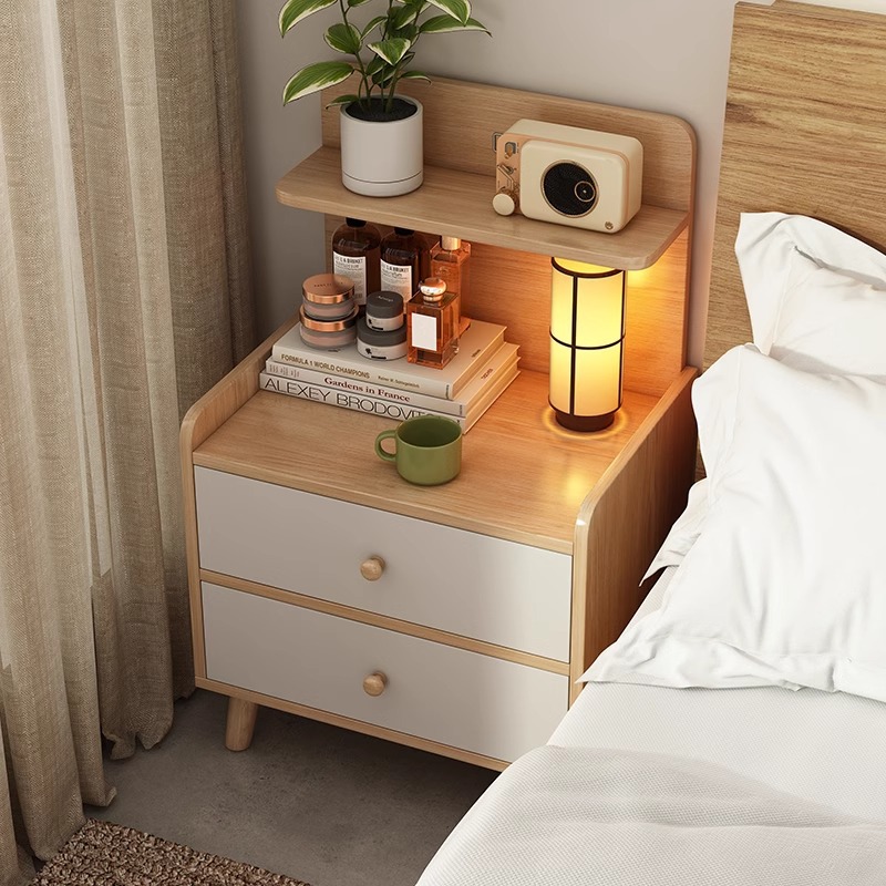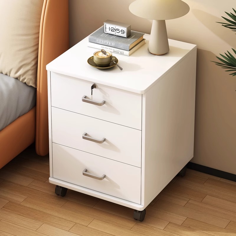 ベッドサイドテーブルはロック付きで移動可能です。家庭用寝室の収納棚はシンプルです。