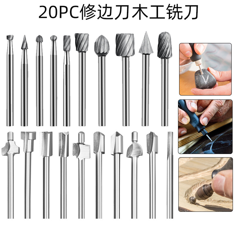 クロスボーダー卸売20点セットトリミングナイフ木工フライストリミング機高速鋼回転やすり磨き彫刻刀