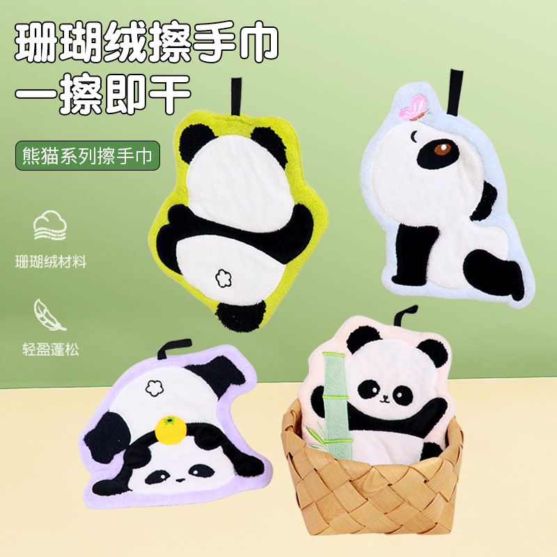 ジャイアントパンダハンギング子供用ハンドタオルかわいい漫画吸収性コーラルベルベット小さなタオルキッチン厚手のハンカチ