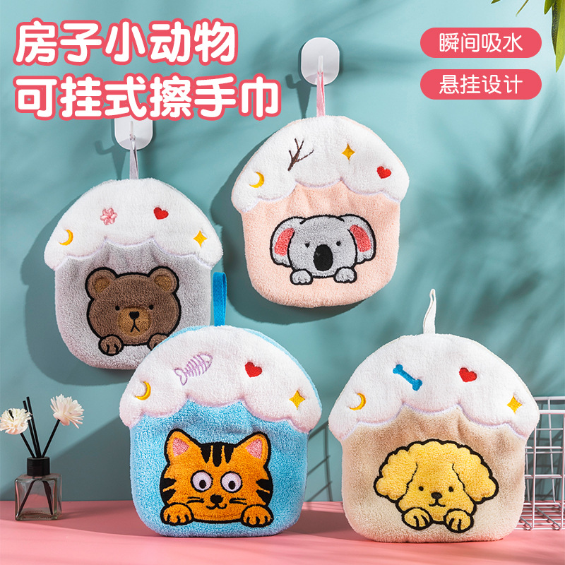 クロスボーダーコーラルベルベット漫画ハンドタオルハンギングかわいい吸水速乾キッチンバスルームトイレハンドタオル
