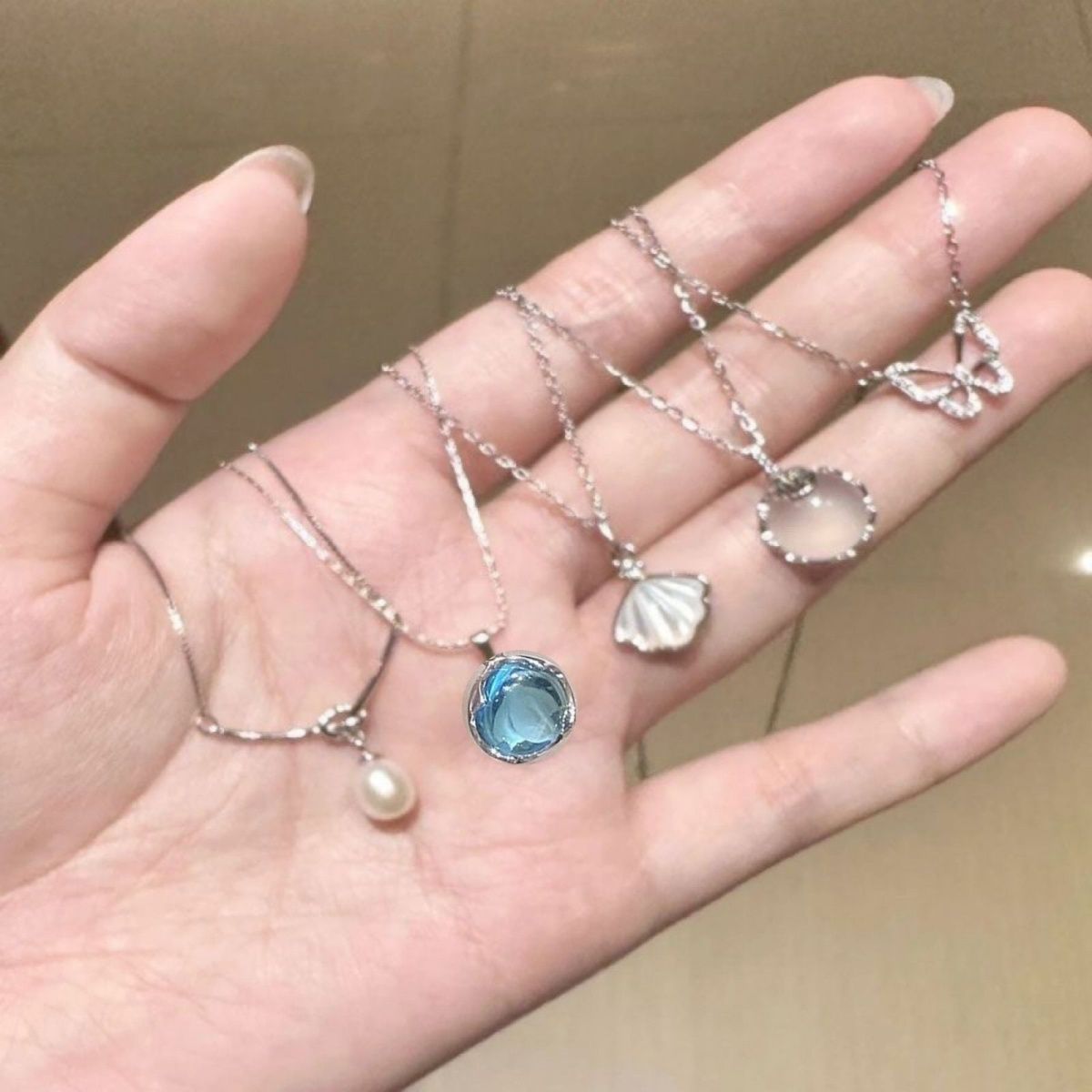 白玉の5つのセットの気質の小さい大衆の設計のネックレスの女性の月の光の石は軽くて豪華でシンプルで、首の鎖の高級な鎖に似合います。