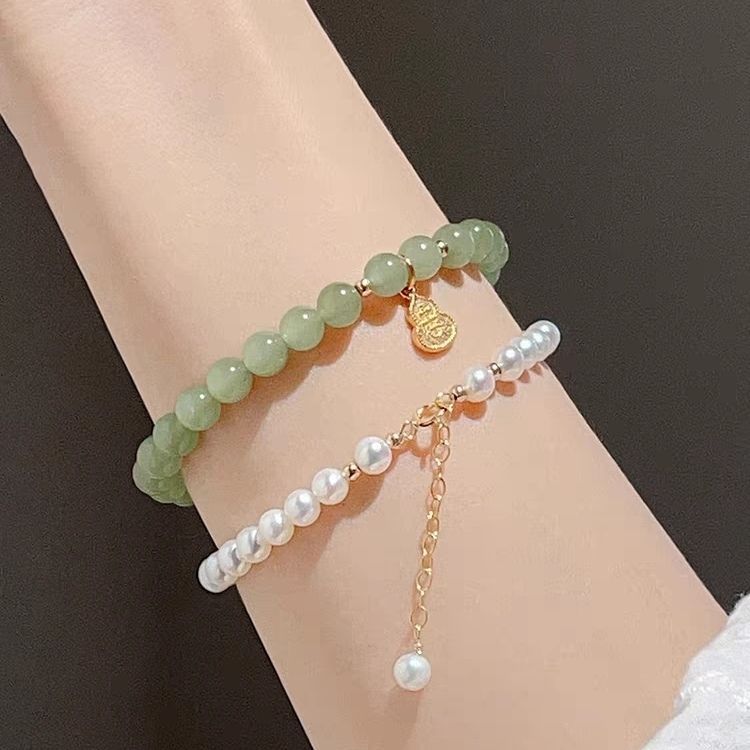 スタッキングセット 和天翡翠ブレスレット レディース 翡翠 翡翠 青白翡翠 パールブレスレット ラウンドビーズ ニッチギフト