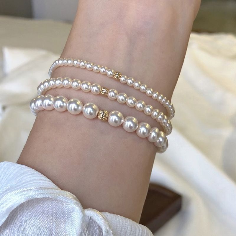 洗える、色褪せない、多用途のネットセレブブレスレット、Shijiaの本物のハンドジュエリー、パール気質のデイリーブレスレット、ラウンドで伸縮性があります。